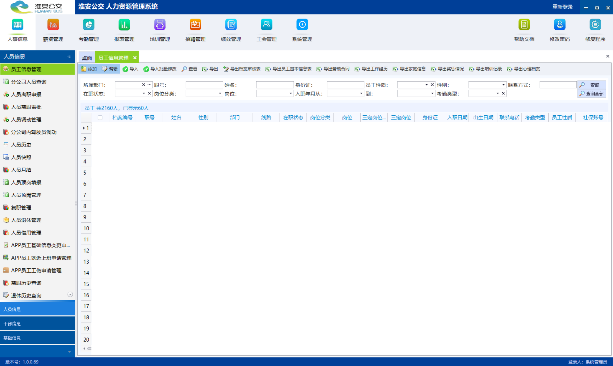 智慧交通公司为淮安公交开发的人力资源管理系统,实现了人事管理的数字化转型。